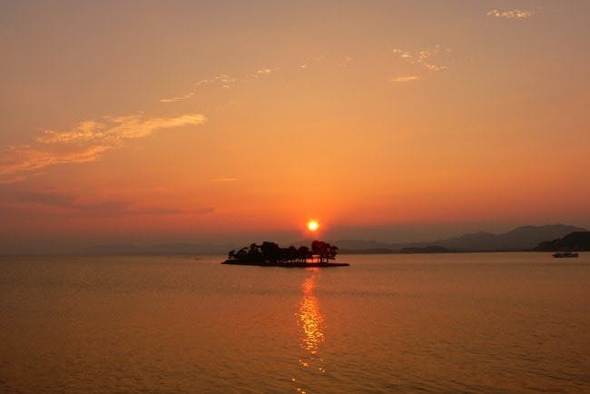 宍道湖の夕日は、日本の夕日百選に選ばれるほど美しく、「宍道湖の夕日」と言われ有名です。茜色に染まる夕焼け空と穏やかに揺らぎ輝く湖面の素晴らしい景色が一度に観えます。