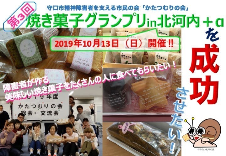 守口市精神障害者を支える市民の会「かたつむりの会」(以下かたつむりの会)では1997年から地域で暮らす精神障がい者も一般の人も生きやすい街づくりをしようと様々な活動してきました。その一環として2016年「焼き菓子グランプリin北河内+α」を開催しました!