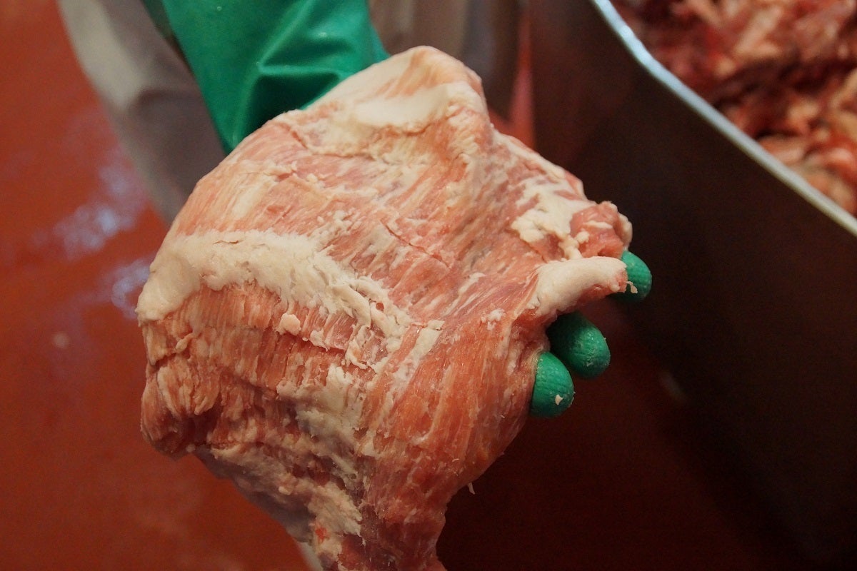 枝肉となった部位は丁寧に切り分けられ生ハム用やステーキ用に仕分けているが、なぜかホルモンなどの内臓肉はまとめて置かれていることに気が付きました。