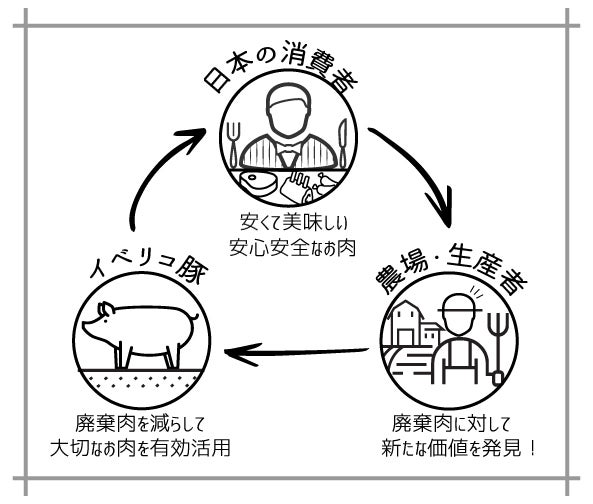 このイベリコ豚ホルモンを日本で広めることが農場の助けになり、廃棄食肉の有効活用、