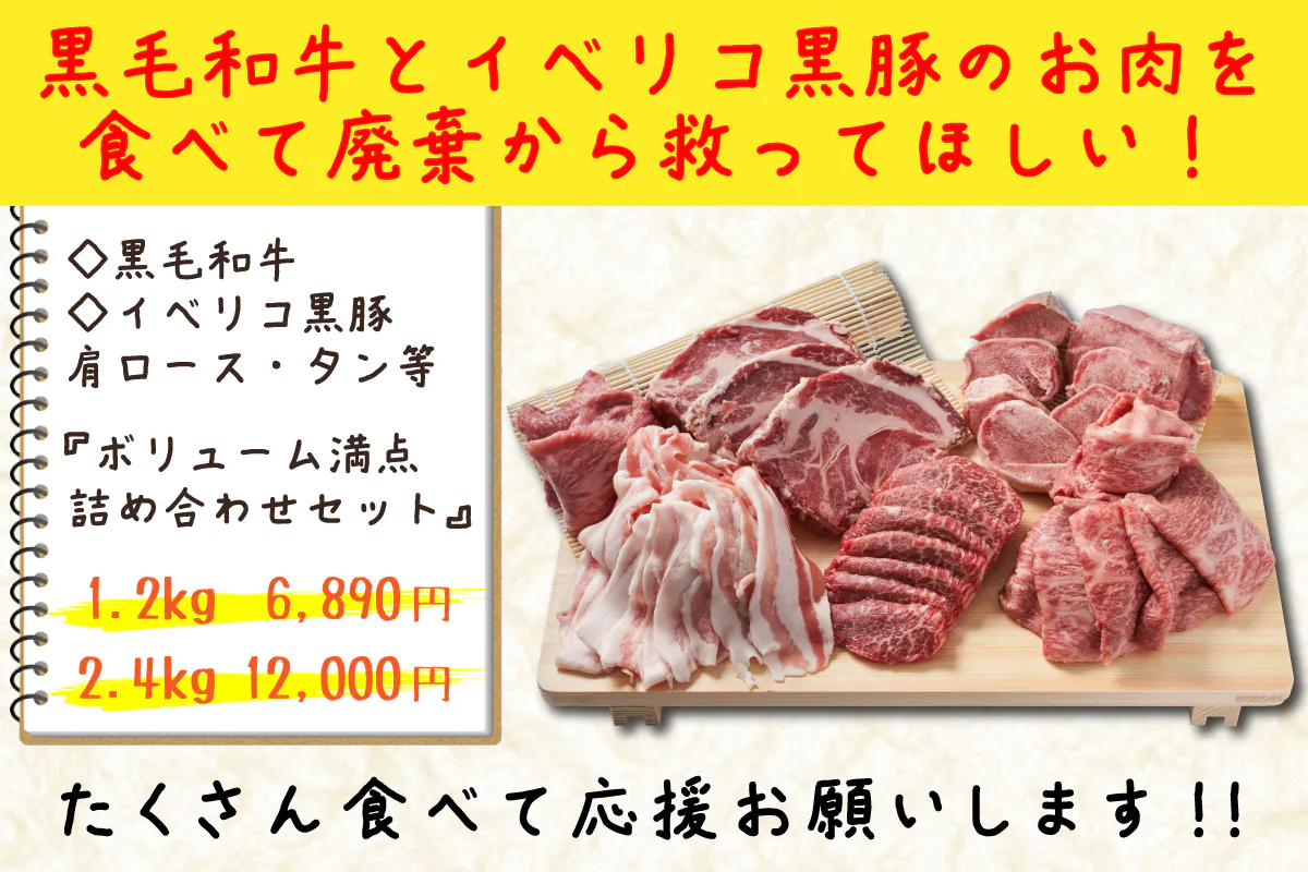 イベリコ黒豚700gとA5ランク黒毛和牛500gのお肉満腹 1.2㎏盛り合わせプロジェクト開催中!