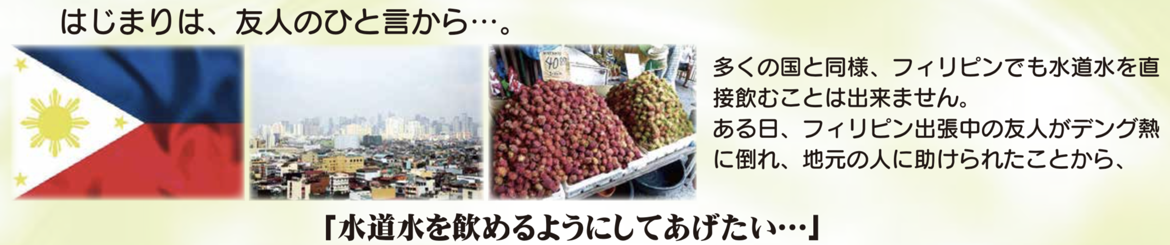 聞けばフィリピンでは飲み水に非常に苦労しているとのこと。