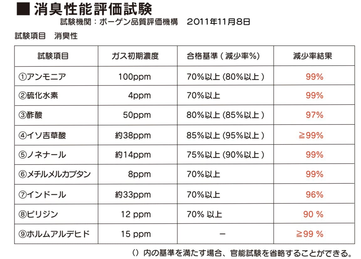 この結果から「消臭性能」を必要とする製品に活用出来ることが確認されました。