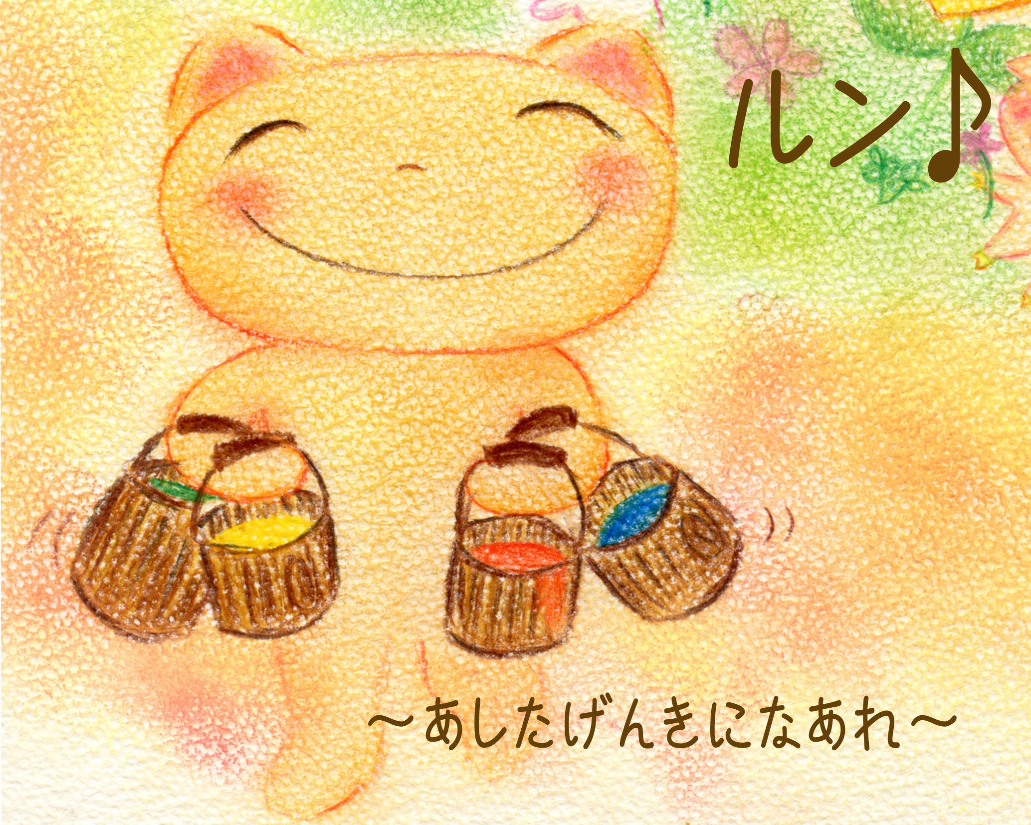 私はソフトパステル色鉛筆を描いているのですが、それらの特徴である、柔らかい優しい色合いピッタリ心温かくなる内容だと感じました。そして、自分自身がシナリオを書いた訳じゃないのに、すぐにイメージが浮かんできて、これなら描きたい!と感じました。
