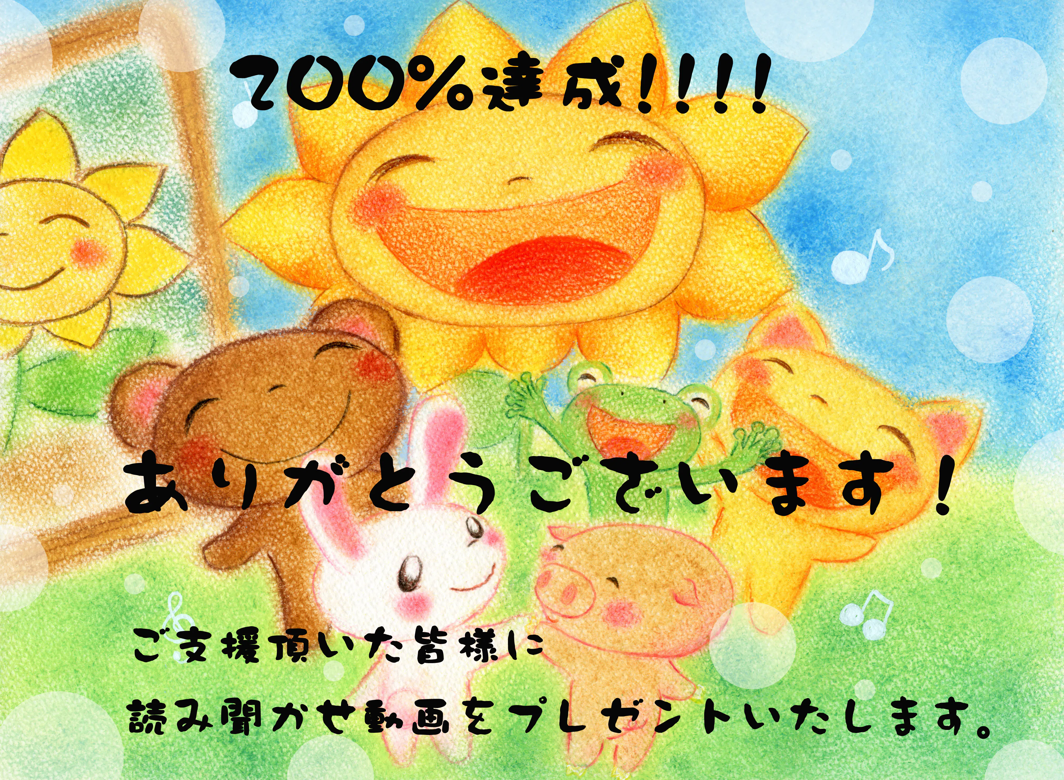2019/06/19 14:57最終日の今日、200%達成することが出来ましたとっても嬉しいですっ♪皆様に感謝申し上げます。200%達成致しましたのでお約束通り「やのともこのお庭で撮った読み聞かせ動画」をご支援頂いた皆様にプレゼントさせて頂きます。本当にありがとうございます。本日23:59:59 まで、まだお時間ございます。引き続きよろしくお願い申し上げます。 もっと見る