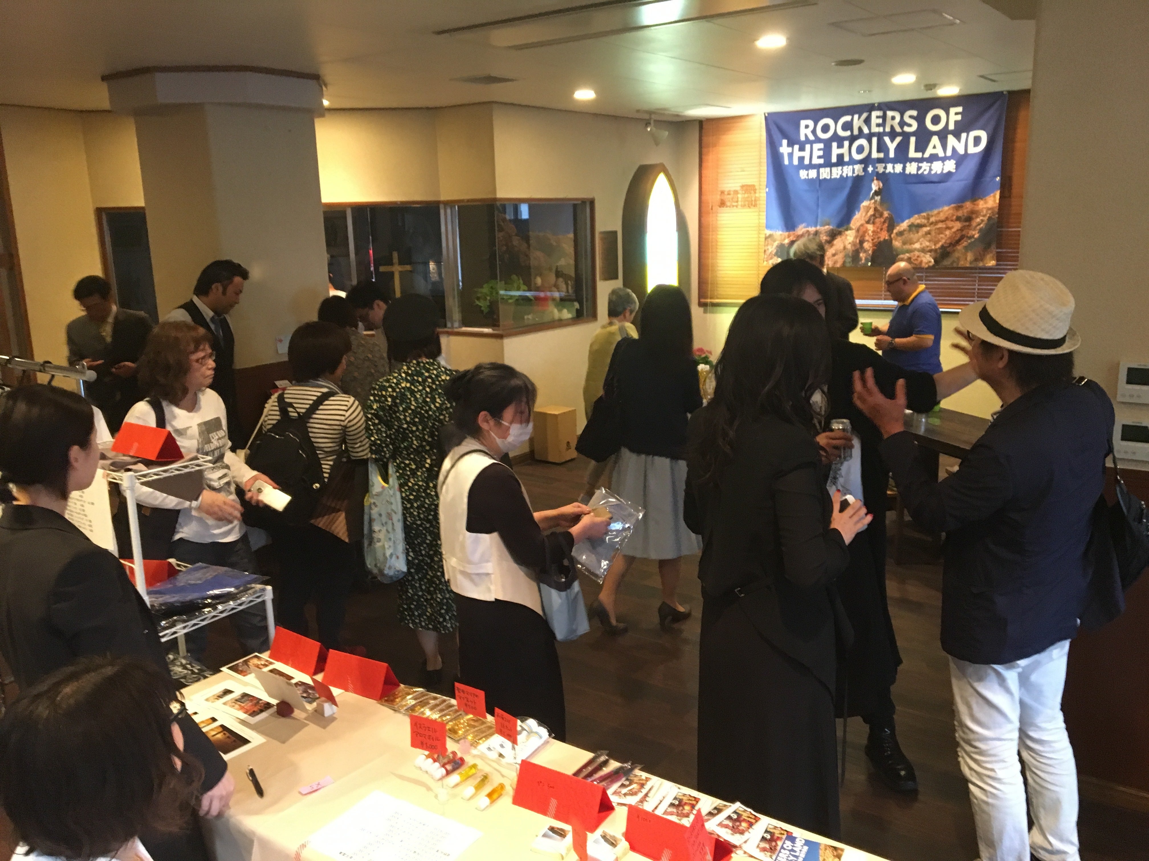 ルーテル東京教会のロビーでは「婚礼の奇跡」で有名なカナ産のワインも振る舞われ、イベント限定グッズも販売。壁面に貼られたパネルを見ながら、来場してくださった皆様と大いに盛り上がりました。