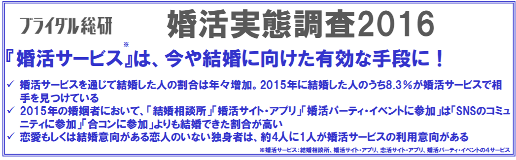 恋愛の一つの経過点である≪結婚≫。ここにたどり着く方々は婚活サービスを利用されることが多くなってきているそうです。