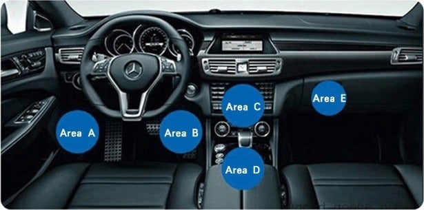 OBD2コネクタの位置は車種やメーカーによってさまざまです。多くの場合は下図の青い丸の部分のいずれかにありますが、よく分からない場合はディーラーにお尋ねになるか、インターネットで「(車種名+年式) OBD2」等のキーワードで検索しご確認ください。