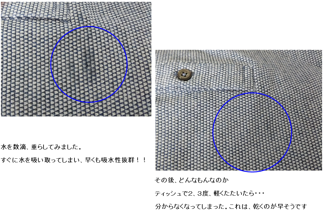 美濃和紙を利用したこの特殊生地は、機能面も優れています。和紙の特性である吸水・速乾・軽量性が抜群です!!