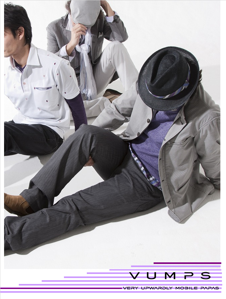 | VUMPSとは、VERY UPWARDLY MOBILE PAPASの頭文字を組み 合わせた造語で、意味は、“上昇志向を持つ大人たち”という意味になります。 “上昇志向を持つ大人たち”に着ていただきたい服、 “上昇志向を持つ大人の人”が着たい服をと あきらめない大人の男性に『5歳若返らせる』というコンセプトで2001年に誕生した大人の新しい定番服 ブランド、VUMPS(ヴァンプス)と言います。 ![]() 日登美株式会社のプライベートブランドになるんですが、遊び心のある大人服。シンプルながらも他では ない、拘りの持ったものを着たい、着ていただきたいと中小アパレル企業発信のブランドです。 今年で19年目になるんですが、ブランドデビュー当初は、もっと拘っていた部分がありまして。 天然繊維の素材しか使わない、スラックスは、ツータックしか作らない・・・ そしてAB体型の方をメインターゲットにしておりましたんで、太めのスタイリング。 中年になってくると、体形が崩れてきて、着たい服が合っても 着れない。。 そんな悩みを解決ではないんですが、体形が崩れてきても着れる大人のお洒落服、ヴァンプスはダイエット しなくても、痩せなくても、着れる大人のオシャレ服を目指していました。 ですが、時代の流れと共に、アンチエイジングや健康志向が流行になり、世の中の男性陣たちは、スマート な方が増える、増える!! この時代の流れとVUMPSらしさの融合と追求をし続けて いまの私たちが愛するVUMPSとなっております。 さらなる成長を目指して、歩き続けて参りますので、皆さま、応援よろしくお願い致します。 |