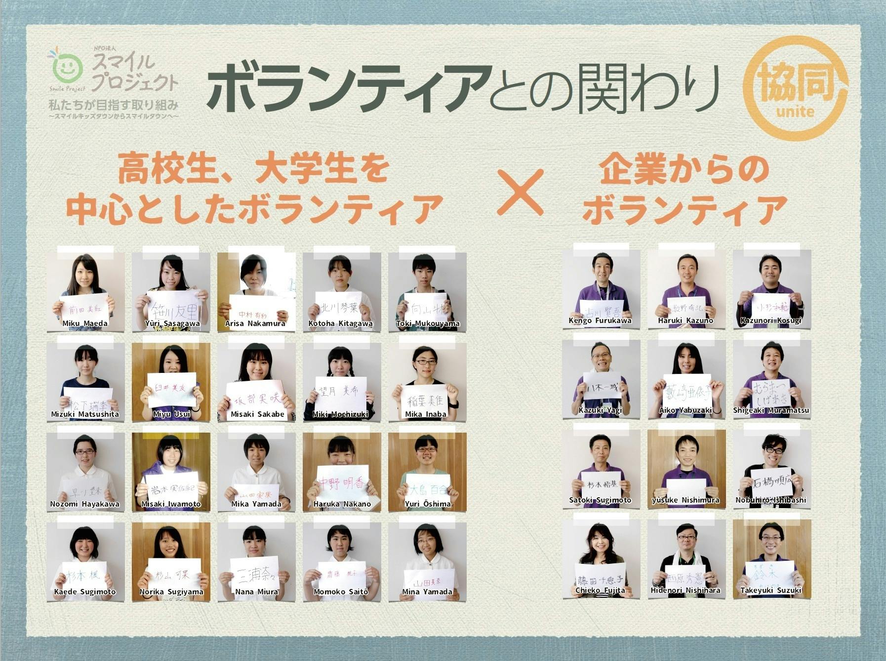 【ボランティアスタッフの心得】こどもたちが、わくわくドキドキしながら社会の仕組みを学んでいくことが一番大事なことです。「現実社会はこうだ」とか「仕事はこんなに厳しいものだ」といった指導や口出しは無用です。 こどもたちの自主性、協調性、想像力を大いに引き出し、スマイルキッズタウンは、ぼくらのまちという意識を育てていこう。