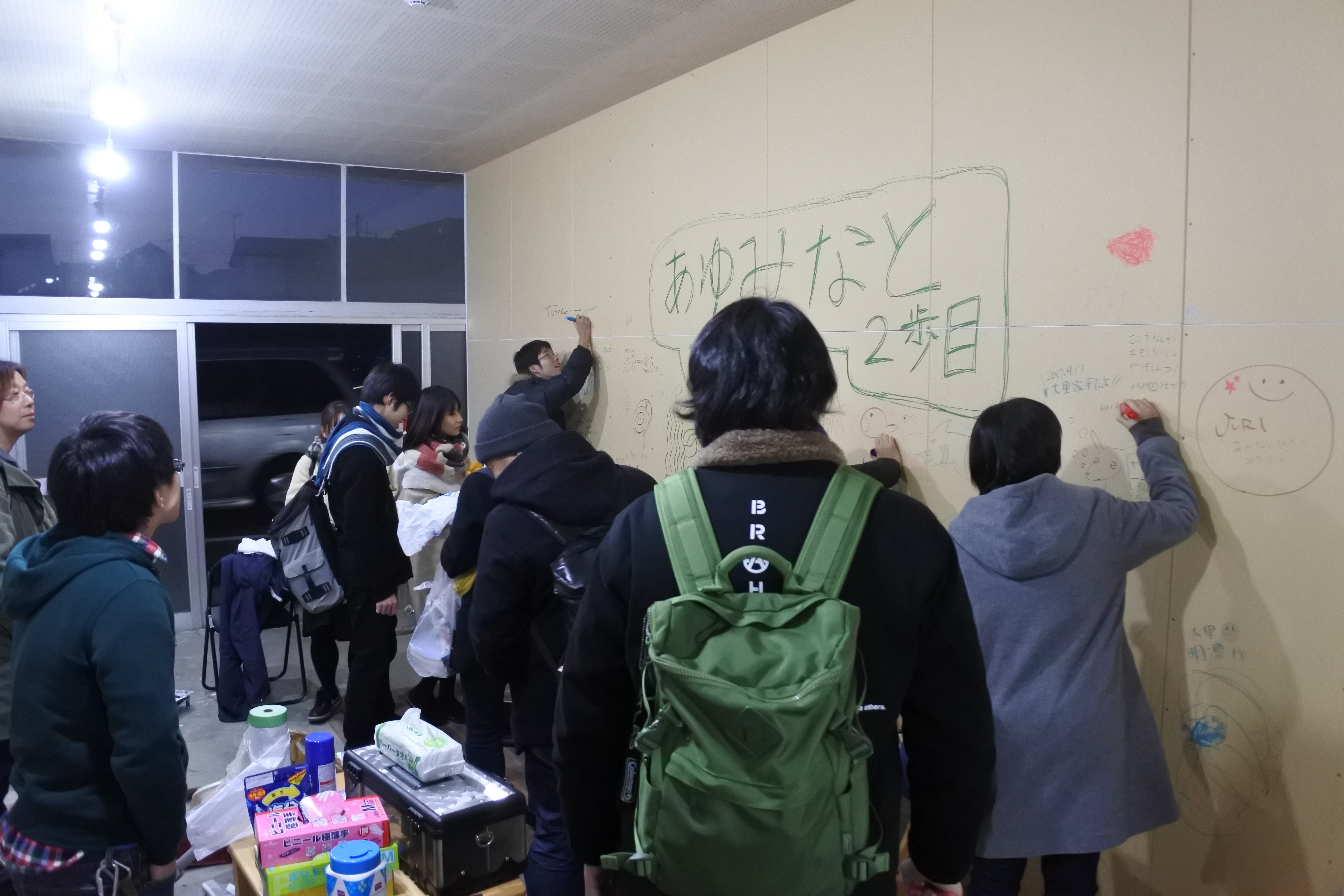 来てくださった人全員に壁に書いてもらっていたメッセージは一面を埋めていました。