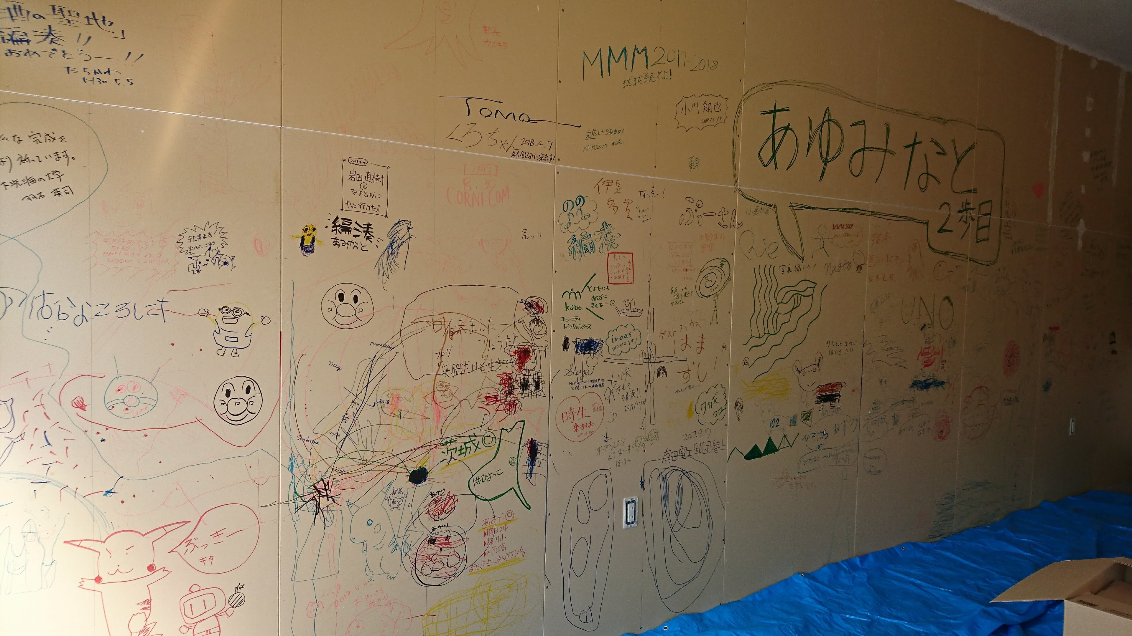 来てくださった人全員に壁に書いてもらっていたメッセージは一面を埋めていました。