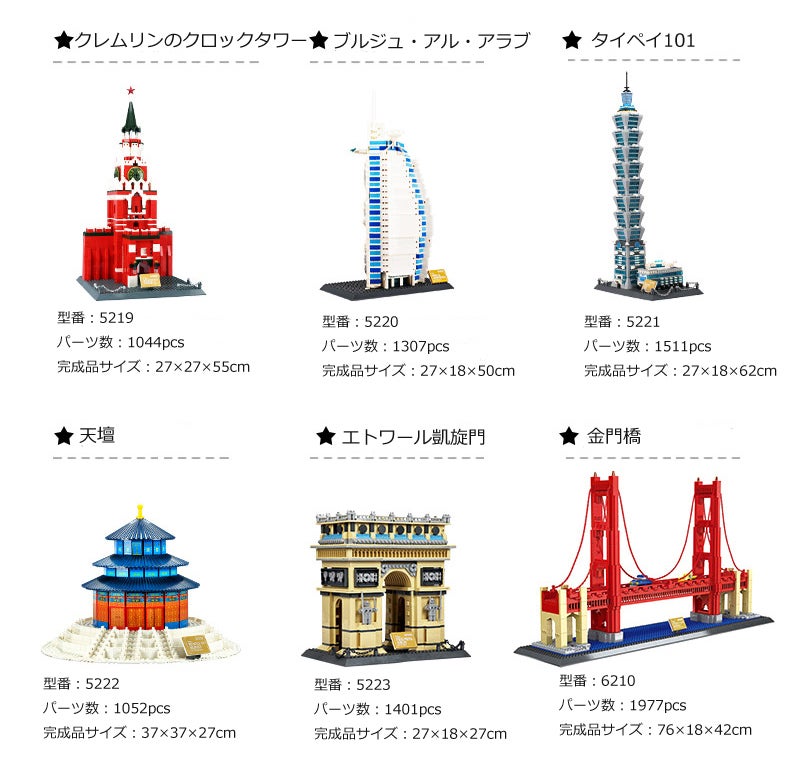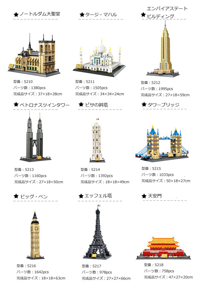 値段も抑えつつ、リアルな作りにこだわり、今回ご用意したのが世界の有名な建物15種類です。