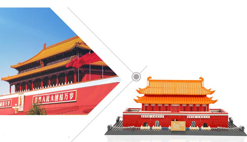 天安門は、中華人民共和国の北京市東城区に位置する城門で、明・清代の王宮「紫禁城(現・故宮博物院)」の第一門(※正門は第二門の『午門』)。楼上で毛沢東が中華人民共和国の建国宣言を行い、中華人民共和国の国章にもその姿が描かれるなど、中華人民共和国の象徴のひとつとされている。天安門広場とは長安街を隔てて隣接する。