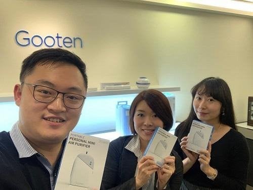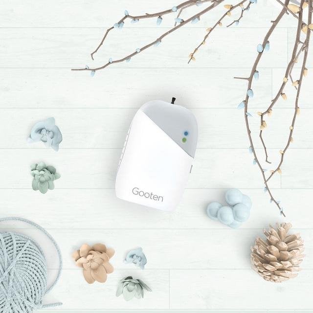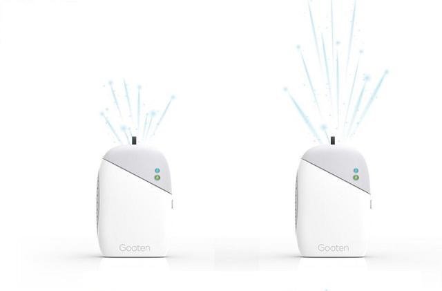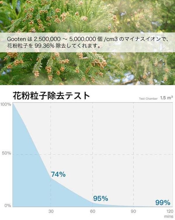 Gootenは5,000,000個/cm3のマイナスイオンを発生。パワフルな機能で花粉粒子を99.36%(※)包んで落とします。