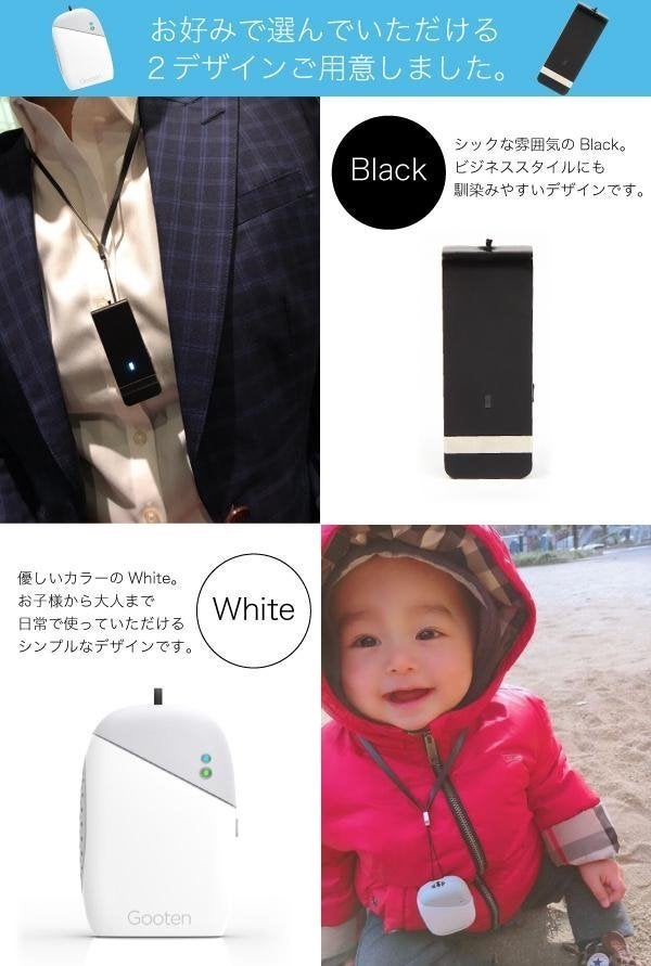 Gootenはコンパクトで超軽量。ブラックは22.5g、ホワイトは40g。重さをまるで感じない首掛けタイプなので、長時間の使用でも首や肩に負担が掛かりません。いつでもどこでもキレイな空気を持ち運べます。
