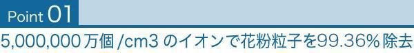 ①花粉粒子を99.36%除去。5,000,000個/cm3のイオンを放つ、ポータブル空気清浄機