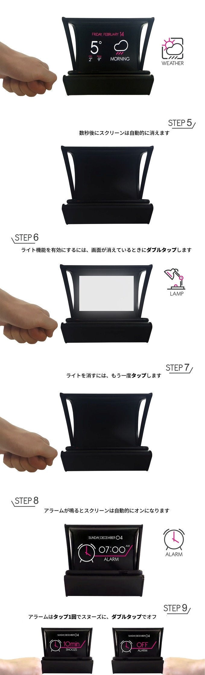 あなたの声でアラームを設定、またはオフにするか、テーブルを「タッチ」することで操作が可能です!寝る前や目覚めの時にあなたは、もうスマートフォンがある場所を探す必要がありません。