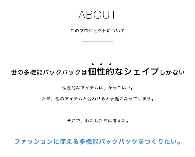 ファッションアイテムとしての多機能バッグ、コーディネートに溶け込む多機能バックパックを作りたい。