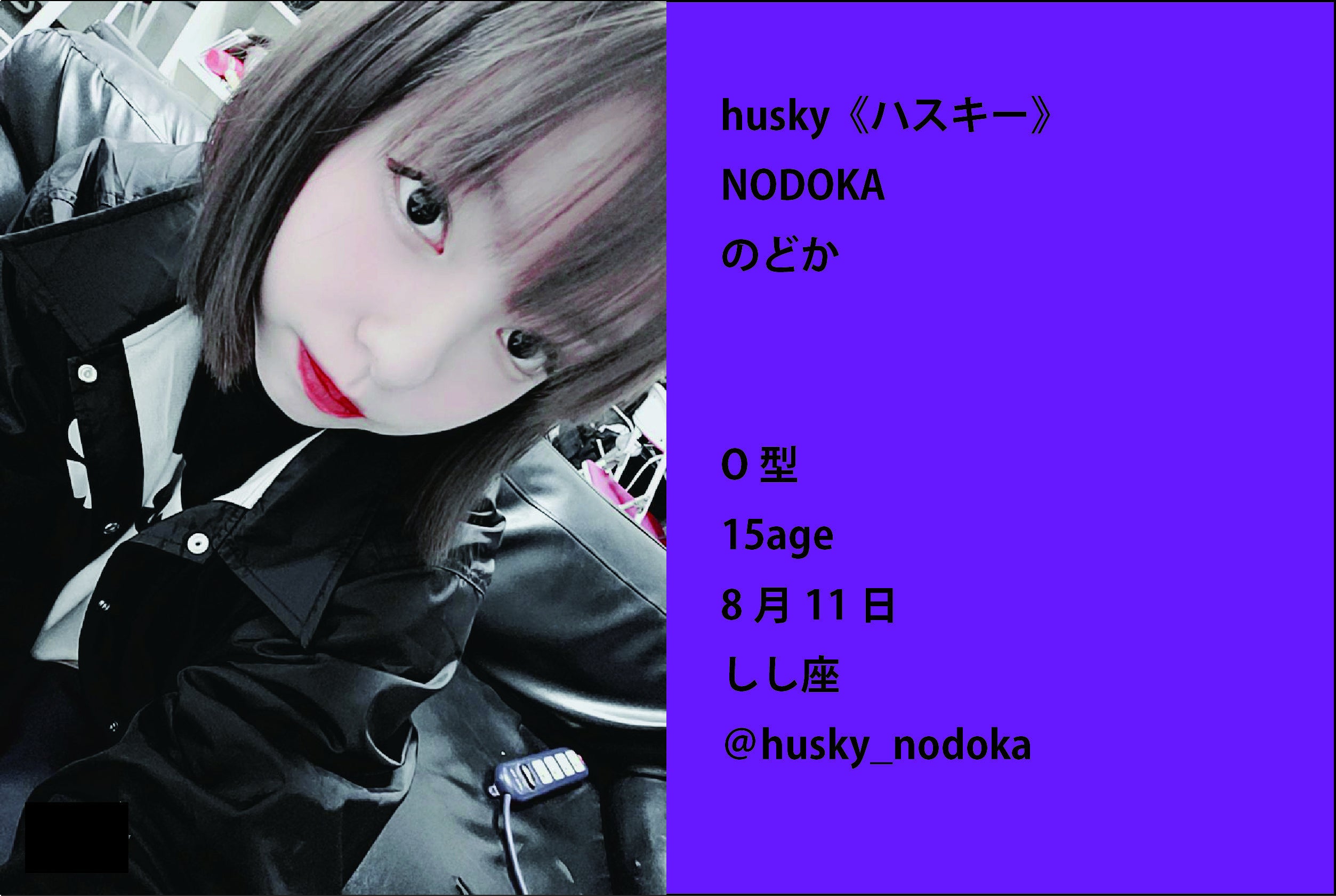 初めまして。husky《ハスキー》です。2018年8月2日にデビュー。平均年齢16.5歳の女の子が、ロックをこよなく愛しカッコよく・可愛くをモットーに活動中!