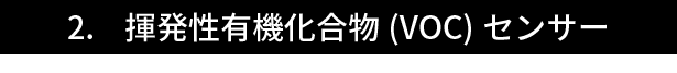 A. 揮発性有機化合物(VOC)は、特定の固体または液体からガスとして放出される物質です。身近なものでは、塗料やラッカー、漂白剤、ワックスなどの家庭用品、洗浄と消毒に使用する薬品、建築資材(合板やパーティクルボード)、家具、オフィス用品など幅広い製品から排出される可能性があります。人体に侵入すると、眼、鼻、および喉の炎症ならびに頭痛、失神、悪心などを引き起こす可能性があり、肝臓、腎臓、中枢神経系に損傷を与えたり癌や喘息の原因の一つともいわれています。
