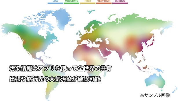 A.はい、Atmotubeのアプリからご覧いただけます。Atmotubeはアプリを通じて観測データをサーバーへ送信しています。そして集計された観測データを基に大気汚染評価MAPを公開しています。