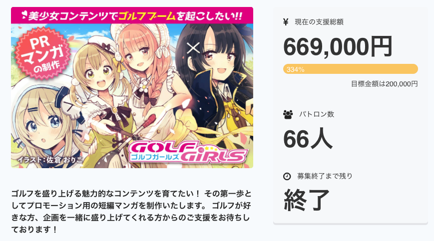 2019/12/20 07:07こちらの活動報告は支援者限定の公開です。ゴルフガールズへのご支援ありがとうございました!