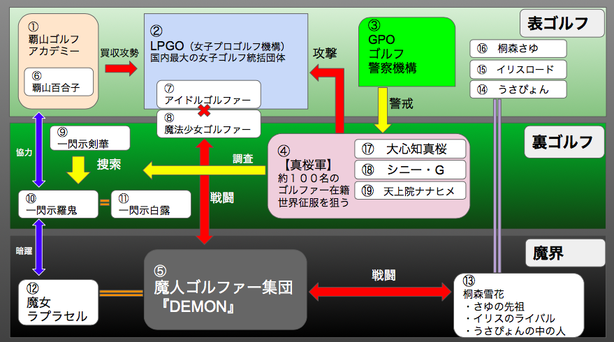 大心知真桜によって組織されたゴルファー集団。真桜に勝てばあらゆる願いが叶えられるが、負ければ配下にならなければならないとされ、有力なゴルファーが多数軍門に下っている。その目的はゴルフによる世界征服だと噂されている。