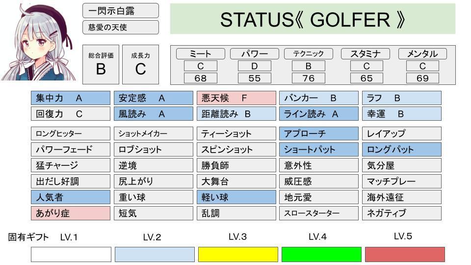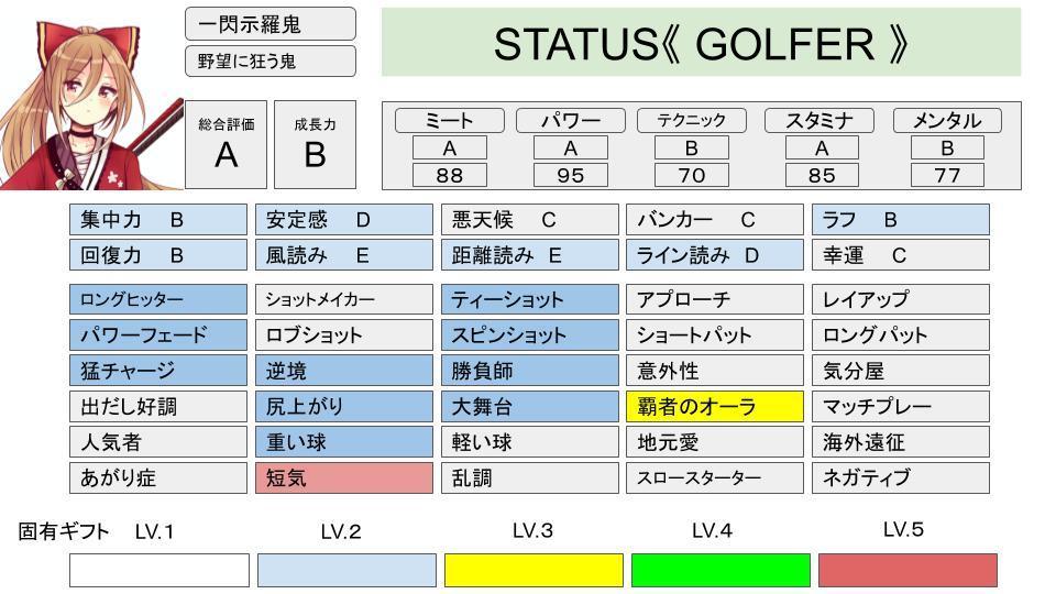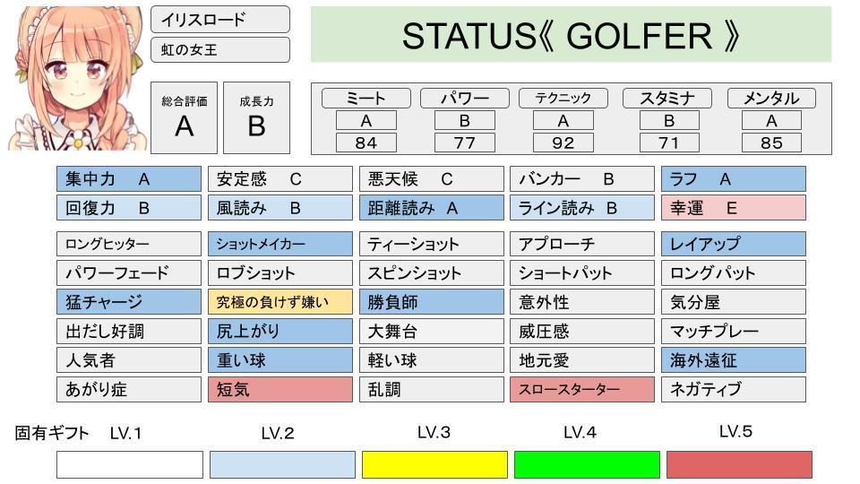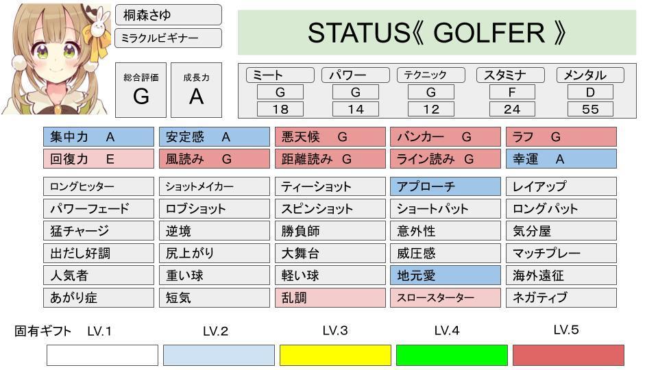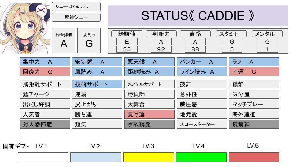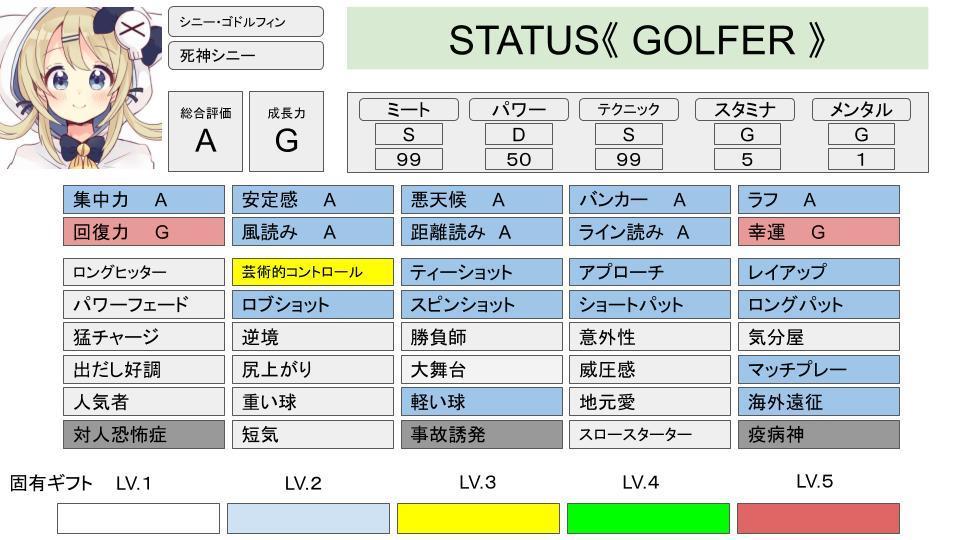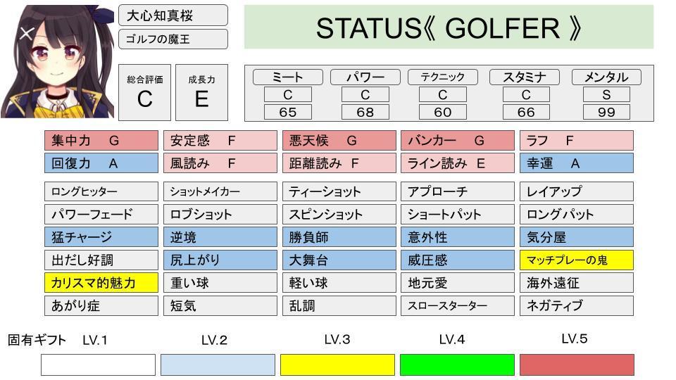 以下はさらに詳しい(制作中の)ゴルフガールズ設定となります。