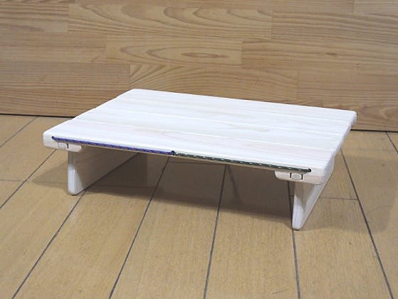 ヒノキ板(9mm)を使用したA4サイズの折りたたみテーブルです。