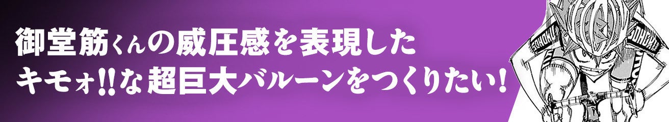 週刊少年チャンピオンの人気作品「弱虫ペダル」に登場する、御堂筋くんのレース中の威圧感を再現した巨大バルーンを製作して展示します!プロジェクトを実現して、みなさんも御堂筋くんの迫力を体感してください!