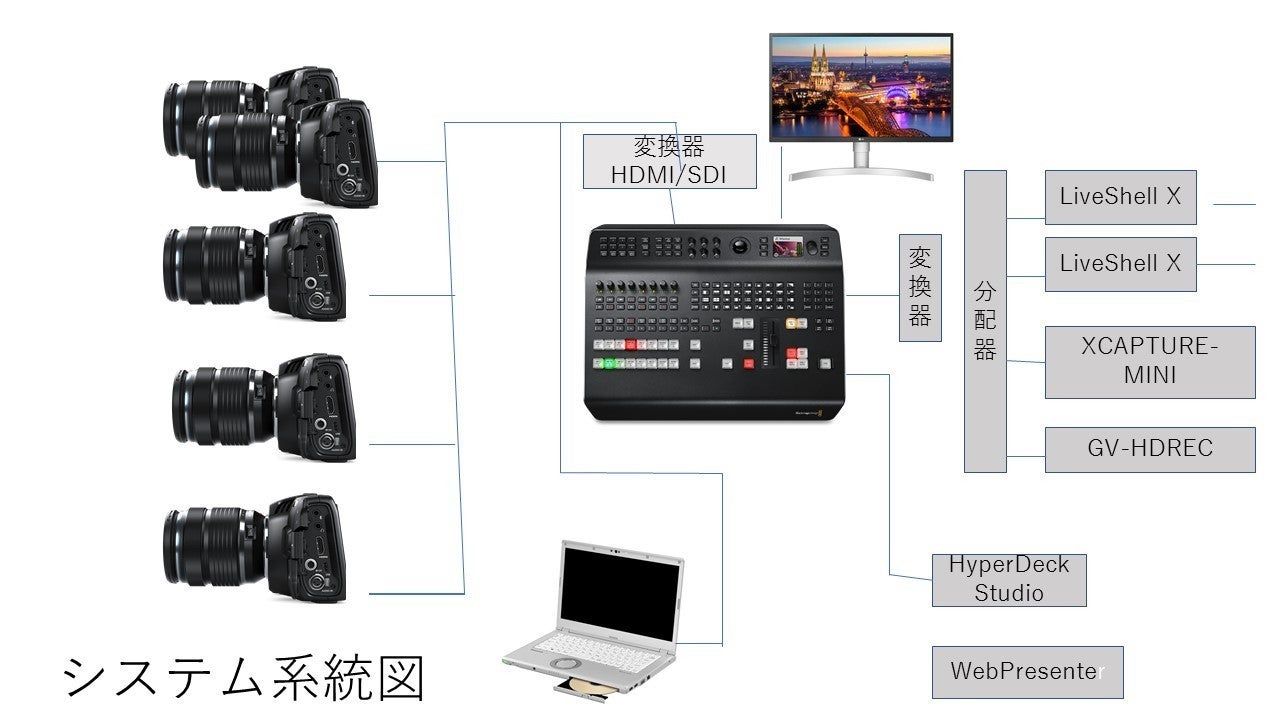 スイッチャーは、ATEM Television Studio Pro 4Kの導入,収録機器も、HyperDeck Studio Miniの導入を図りたい。
