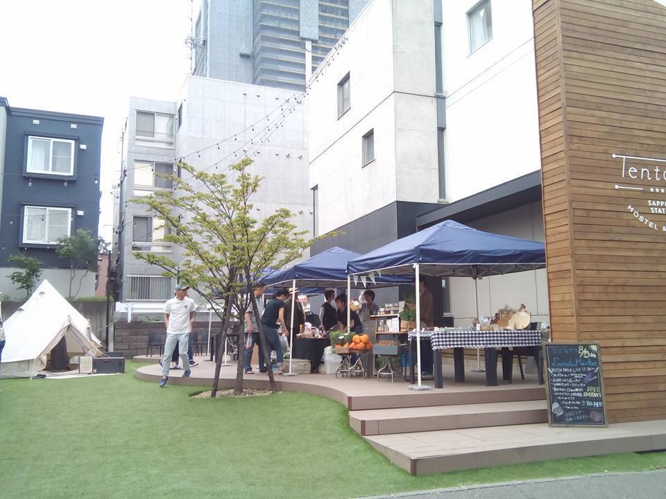 Ten to Ten Sapporo Stationのテラスでのfarmers marketの様子…