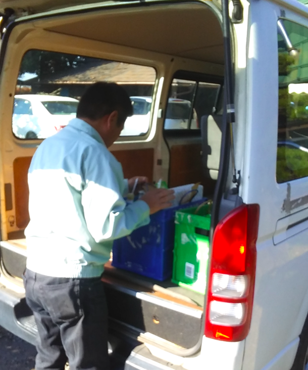 ↓寄付いただいた食品の回収・配送を行っている様子↓