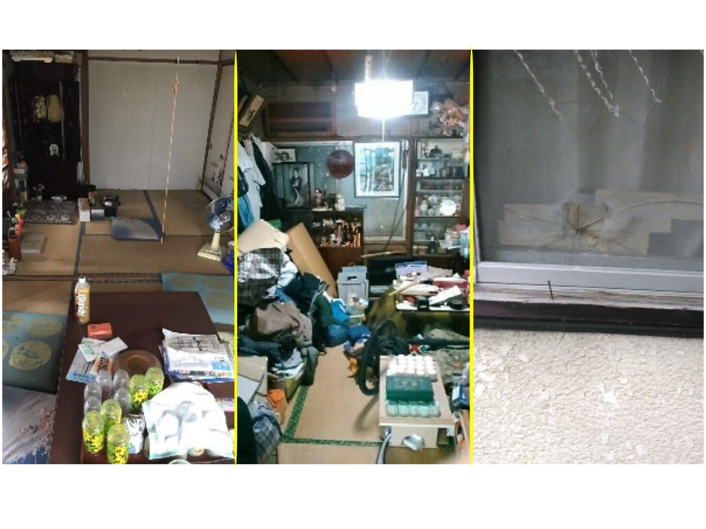 ↓和室2部屋・割れた窓ガラス・破れた網戸↓