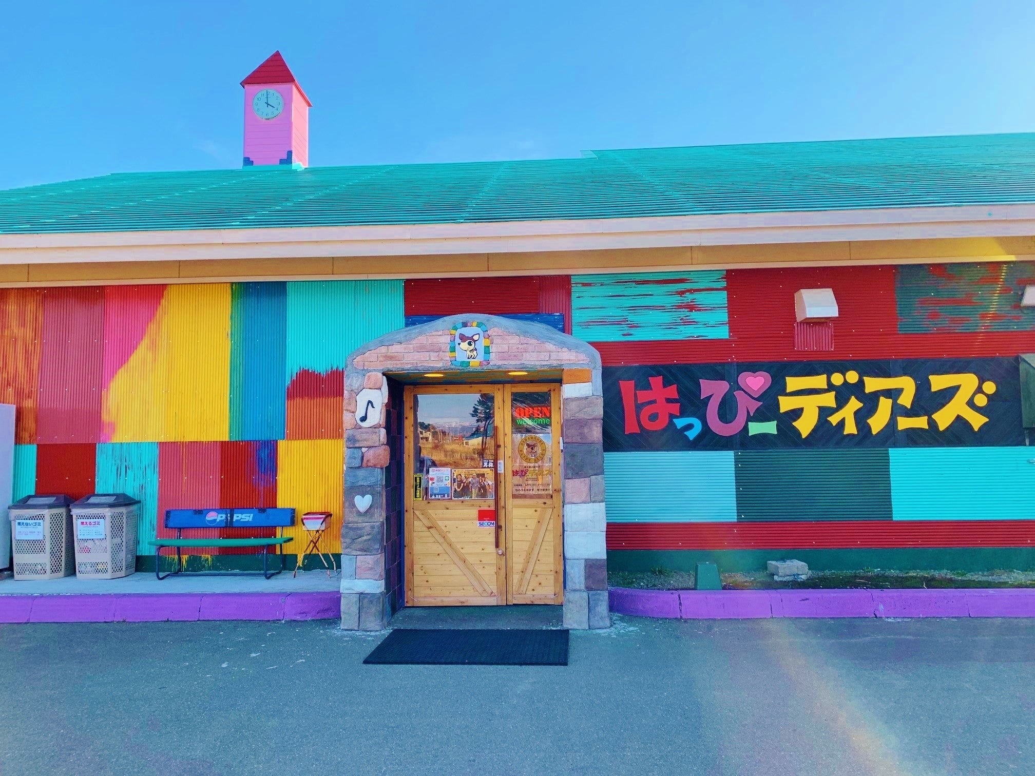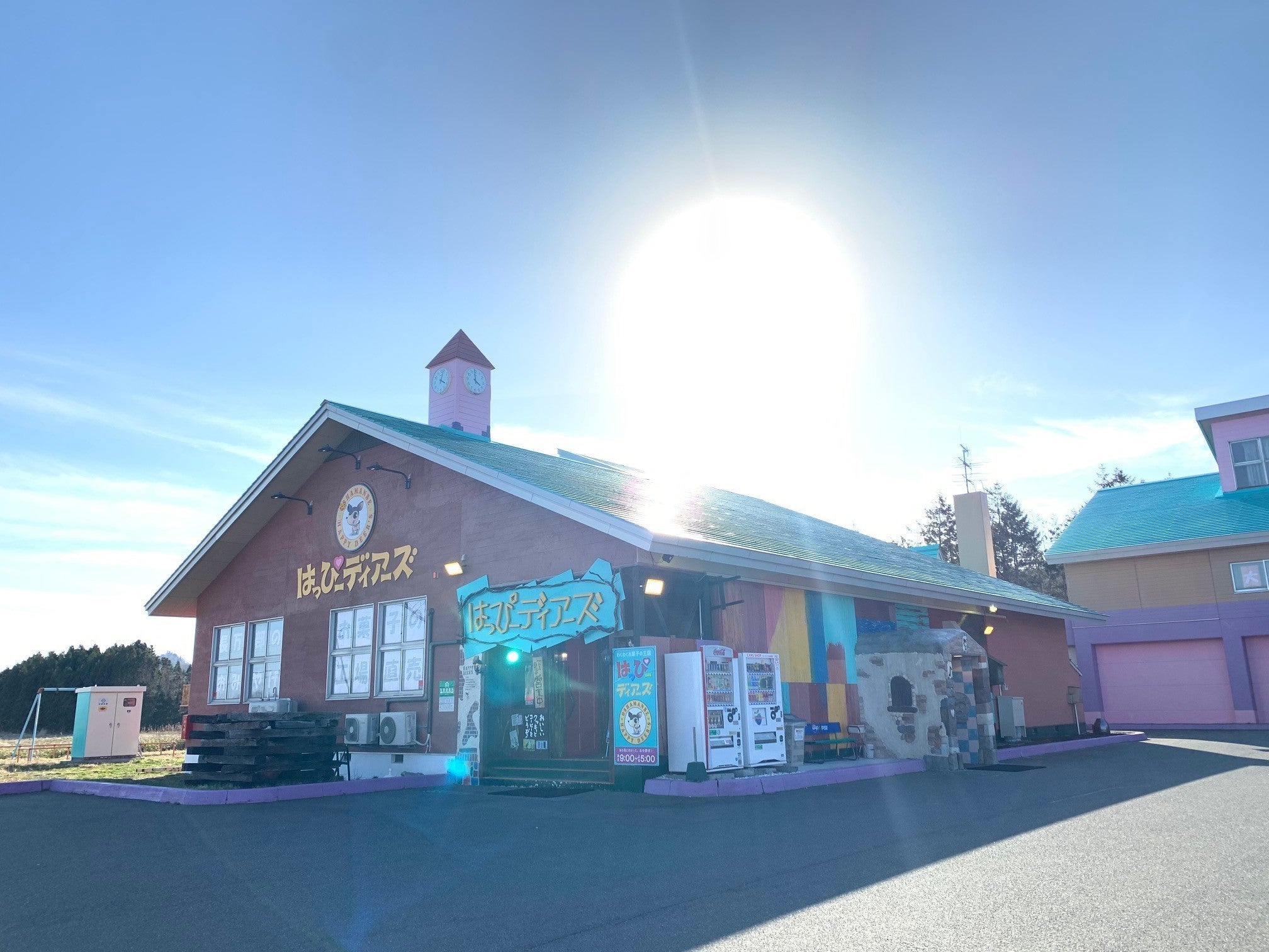 ↓お店は写真のとおり、かなりド派手な作りで、もともとは中ノ沢小学校という廃校になった小学校を改築してお菓子の工場と、お菓子の直売店を運営しています。