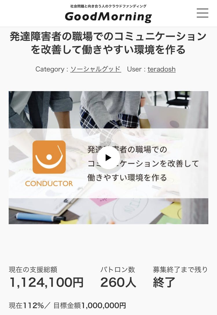実は夏頃に就労支援をしているサポステの「集中訓練」という仕事上けっこう大変なプログラムと重なり、クラファンサイト制作にくじけかけたこどありました