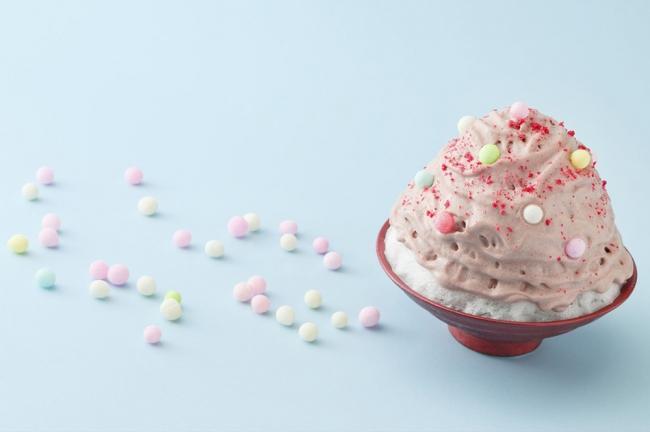 エスプーマという細かい泡状のフレーバー付きのクリームを氷の上にのせ、トッピングでオリジナルのラムネを使用したかき氷を看板メニューでお出ししようと考えています