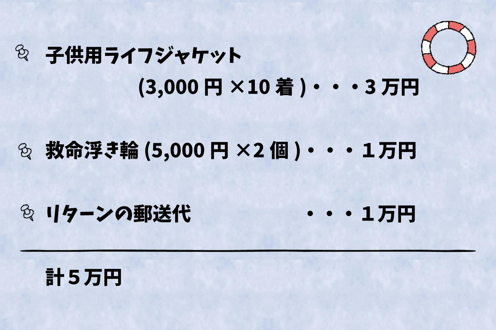 まずは、子供用のライフジャケットの購入と救命浮き輪の購入を考えています。