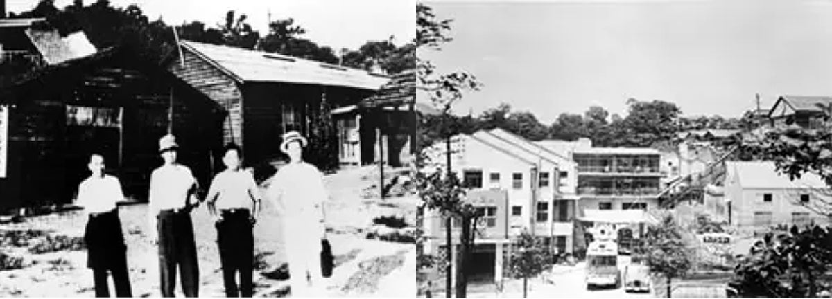 右:1950年代前半の本社。左の建物が都商事から買い取った社屋。