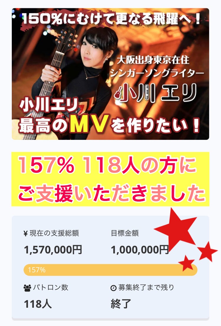 157パーセントいくとは本当に思ってなかったので最後の怒涛の追い上げ、皆さまありがとうございました!!