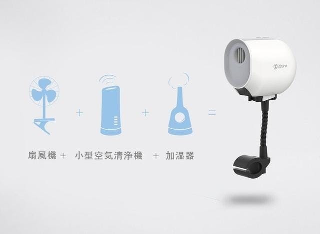 室内から室外まで、オフィスからベビーカーまで、どんな場面でも使える小型空気清浄機を開発しました。手のひらサイズながらも「小型空気清浄機+扇風機+加湿器」の1台3役、連続10時間稼働!そして、可愛いところがお薦めです!