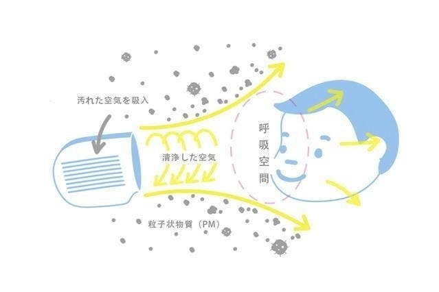 実際に、人が呼吸する時の空気の量はわずか500ccです。小さな空気清浄機はこの500ccのろ過した清浄な空気をユーザーに提供することに集中すべきです。これを行う最も簡単な方法は、ろ過された清浄な空気を集中し、呼吸のホットゾーンである鼻と口のまわりに吹きつけることです。これこそが、「ピンポイント性」です。