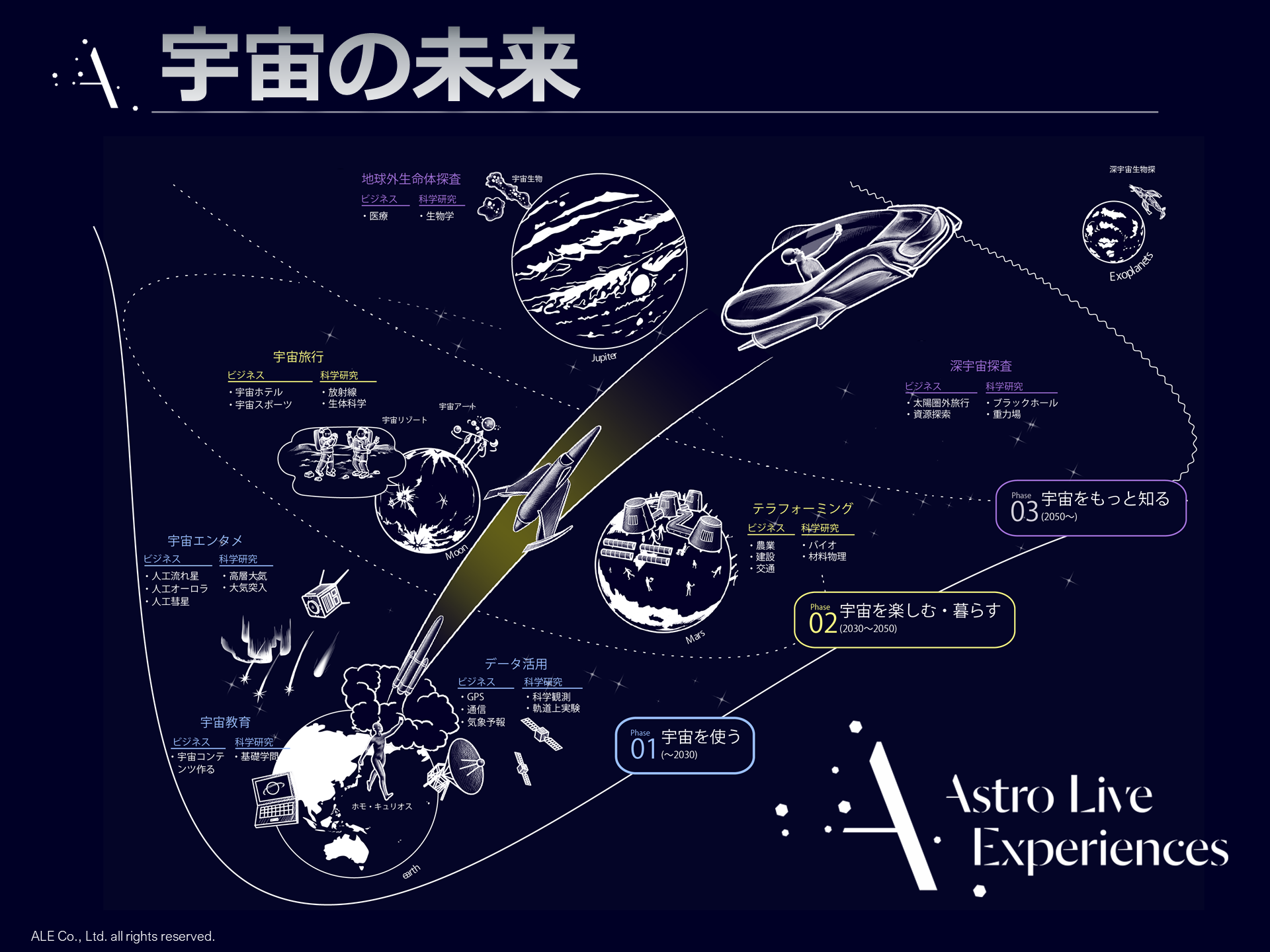 ALEの企業ミッションは「科学を社会につなぎ、宇宙を文化圏にする」こと。