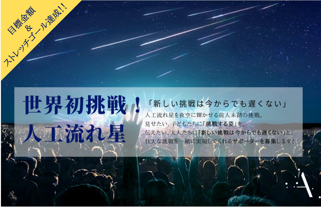 世界初の挑戦の実現に向け盛り上げていきたいと考えていますので、引き続き「世界初の人工流れ星チャレンジを、みんなの力で盛り上げたい!」プロジェクトをよろしくお願いいたします!