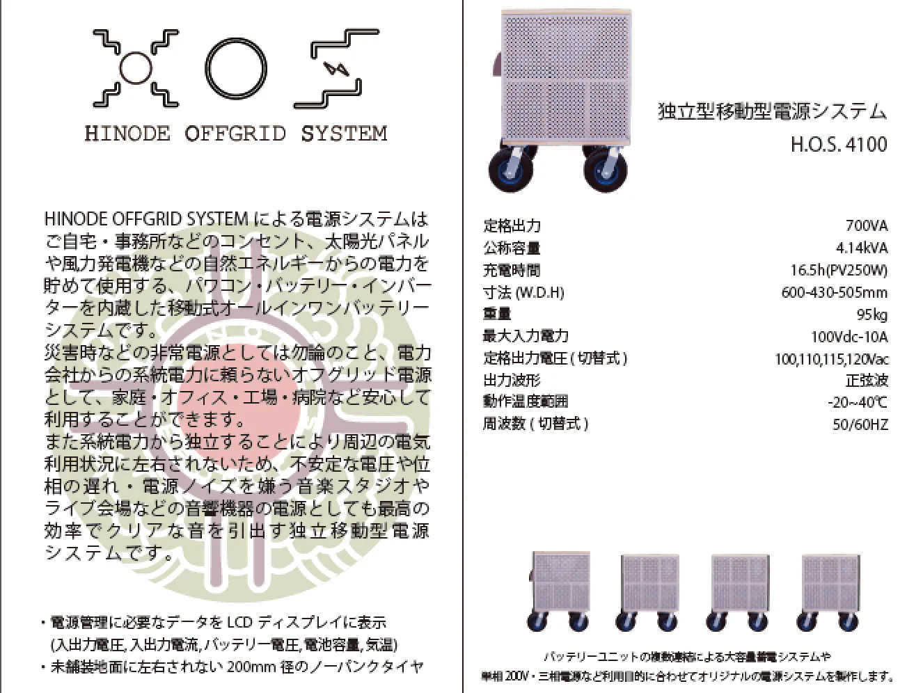 (普段の新亜細亜的超越感覚のイベントで使用している電力量の、音響用に特化した「日の出オフグリッドソーラーシステム」一式)