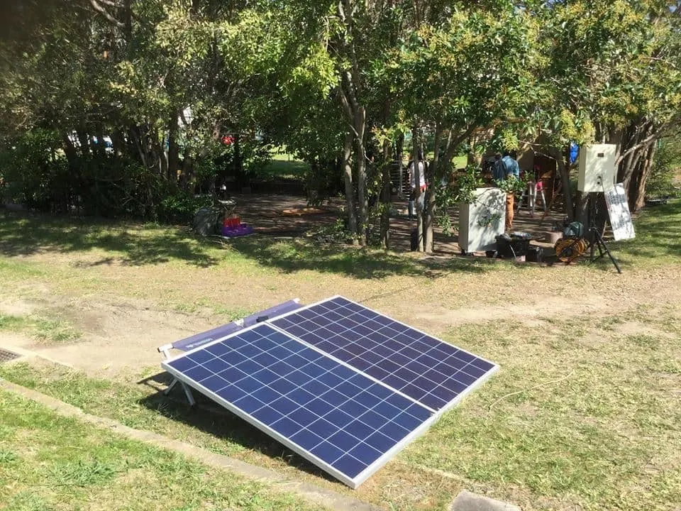 このイベントで使用する電力はソーラーシステムを使用した太陽光発電で賄います。少ないソーラーパネルで、節約しながらどの位電気を使うことが出来るか実験します。そして、ソーラーシステムの電力を使用すると驚くほど音が綺麗に聴こえます!是非とも体感しに来てください。