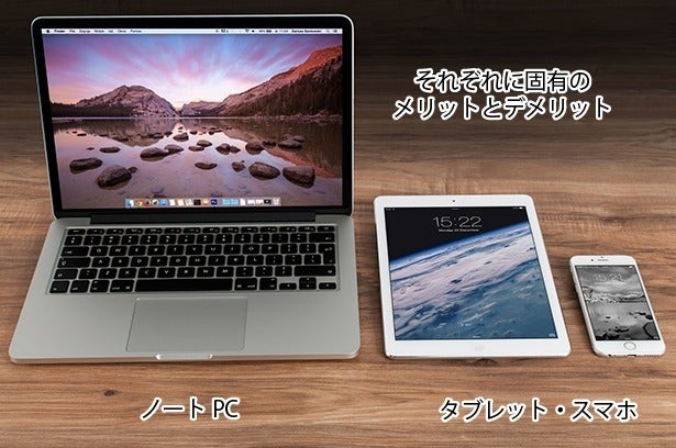 過去には重くかさばるノートPC一択だった外出先でのメールやSkype、チャットワークやクラウドサービス等のビジネス用ワークツールや情報共有ツールは現在ではタブレットやスマホ等のモバイル機器に移行しています。
