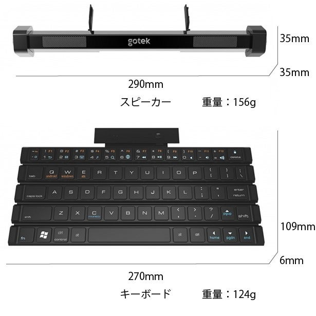 重量:280g(キーボード124g&スピーカー156g)